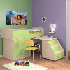 Кровать-чердак "Теремок-1 Гранд" - это целый комплекс мебели, включающий в себя спальное место размером 190*80 см, шкаф для одежды, пенал с ящиками и полноценный рабочий стол. Прочная конструкция рассчитана на детей от 3 до 16 лет. Такой уголок экономит пространство в детской комнате, при этом обеспечивая все необходимые функции.