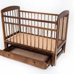 Её можно использовать как качалку и в последствии оснастить колесиками. У этой кроватки есть ящик для хранения.