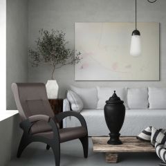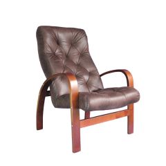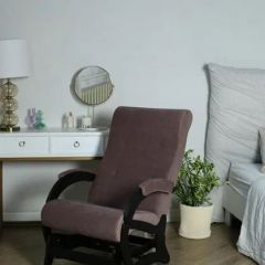 Для комфортного отдыха имеет маятниковый механизм глайдер, который выполняет классическую функцию покачивания, при этом она не проминает напольное покрытие. Кресло обтянуто мебельной тканью или искусственной кожей, каркас-дерево, боковины выполнены в виде криволинейных деталей, образующих ножки-опоры, материал боковины фанера. На боковинах имеются мягкие подлокотники.