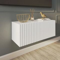 Благодаря своей компактности тумба под ТВ подвесная поможет сэкономить пространство, избежать ощущения загромождённости гостиной, спальни или детской комнаты, а рифлёный фасад будет акцентировать