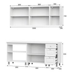 Размер (Ш*Г): 2000*442*Глубина со столешницей 600 мм