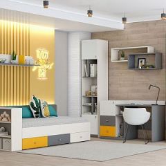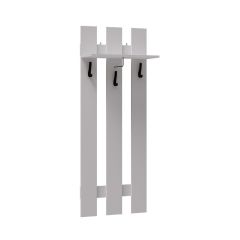 Прихожая имеет простой дизайн и прямые формы. Она состоит из вешалки с тумбой и пенала. Открытая вешалка оборудована полкой для головных уборов, тремя 3-х рожковыми крючками для одежды, ниже выдвижной ящик на роликовых направляющих, под ним открытая ниша с полкой. За распашными дверьми пенала три полки. Тип сборки и направление открытия дверей определеяется при сборке.