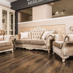 Фасад имеет уникальное сочетание глубокого тиснения и эффекта патины, присущей классическому стилю. Изящество зеркал и зеркальных дверей шкафов подчеркивает фацет.