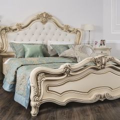 Мебель для спальни «Джоконда» не отличается прямыми линиями, здесь все очертания имеют криволинейные формы, преобладает архитектурный декор со сложными спиралями и витыми колоннами. Это дворцовый стиль, который использовали люди высшего класса в своих домах.